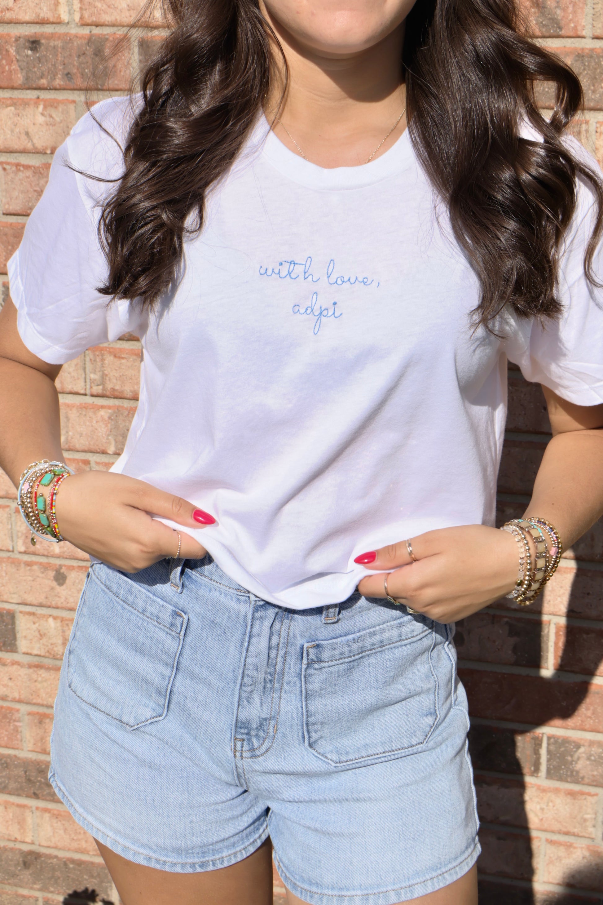 Alpha Delta Pi Embroidered With Love Cropped T-Shirt