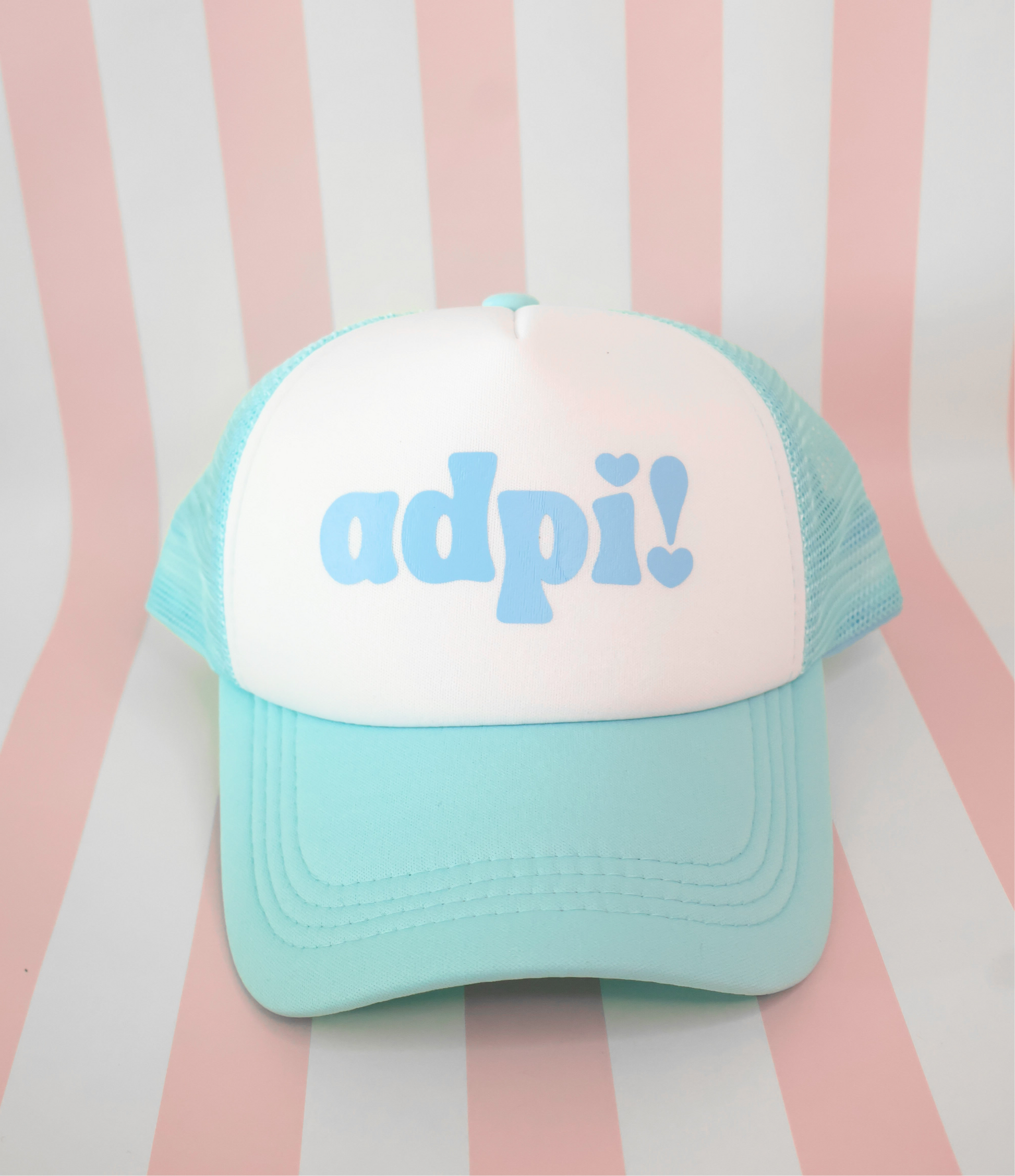 These lightweight, comfy trucker hats are perfect for bid day, pool days, or a casual campus outfit. Each hat is made using high-quality heat transfer vinyl for a clean, vibrant look that lasts. these are a must-have for any sorority girl!
