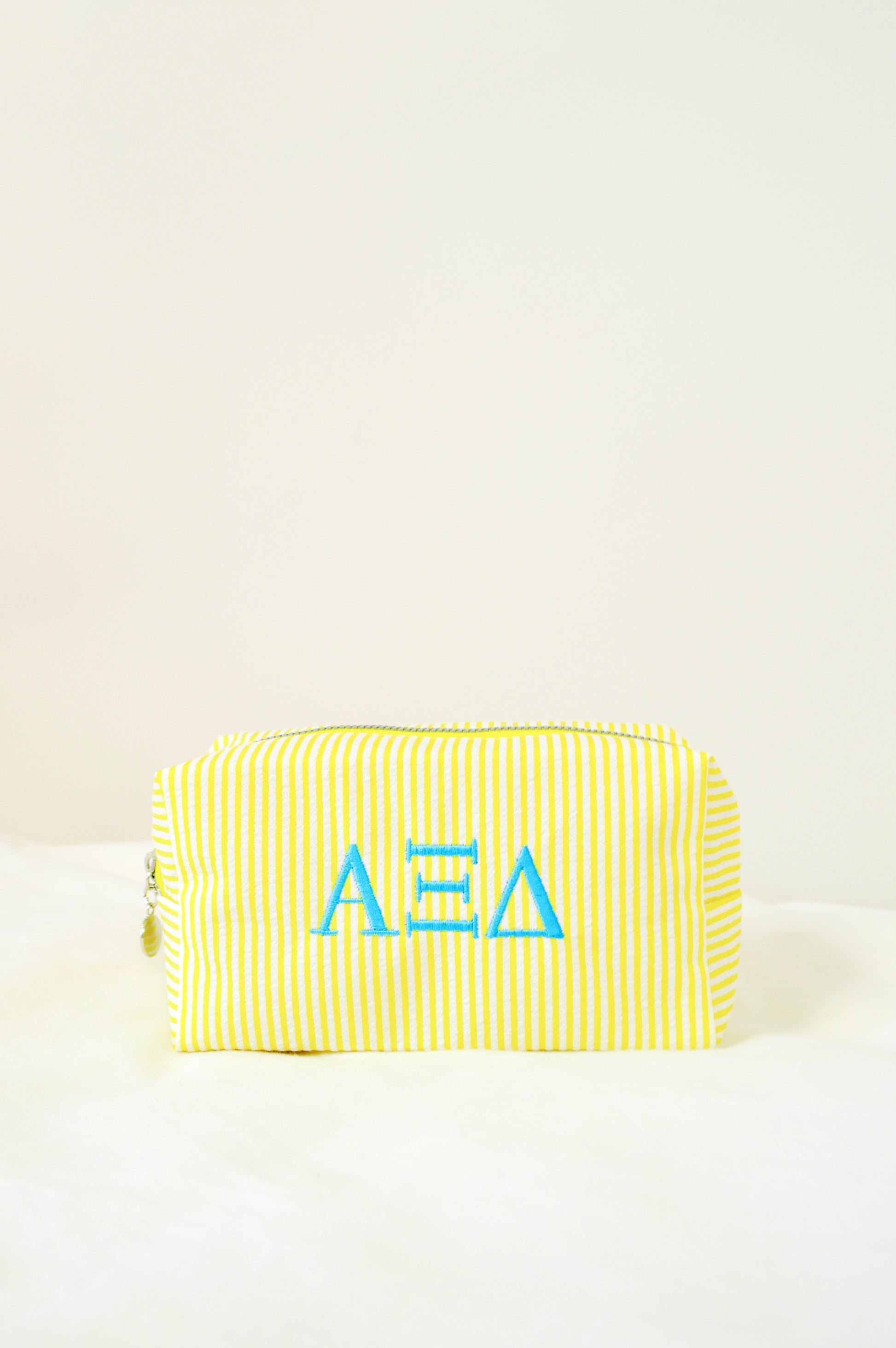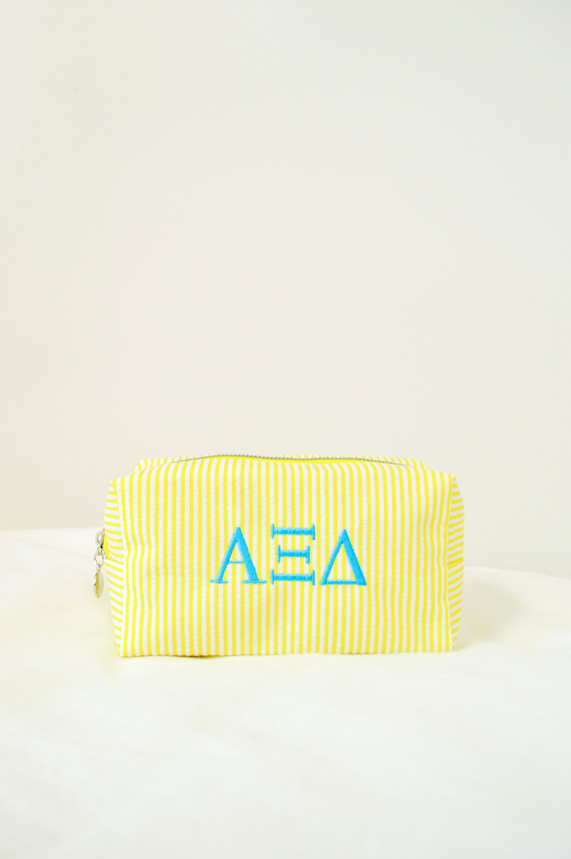 Keep your everyday essentials organized in style with our embroidered sorority cosmetic bags!! Each bag is custom embroidered with your sorority’s Greek letters, creating a simple but elevated piece perfect for showing your sisterhood wherever you go.