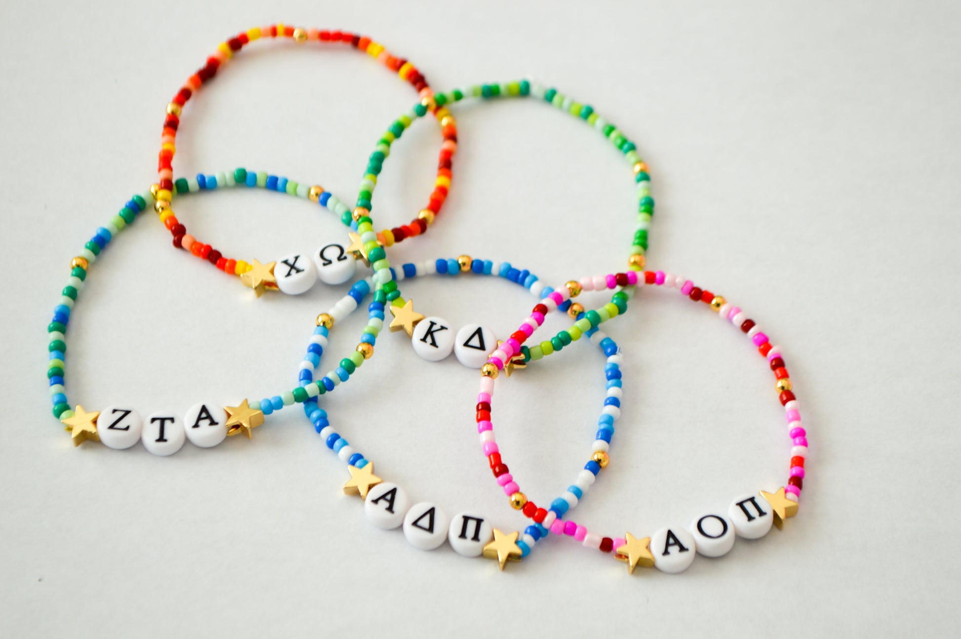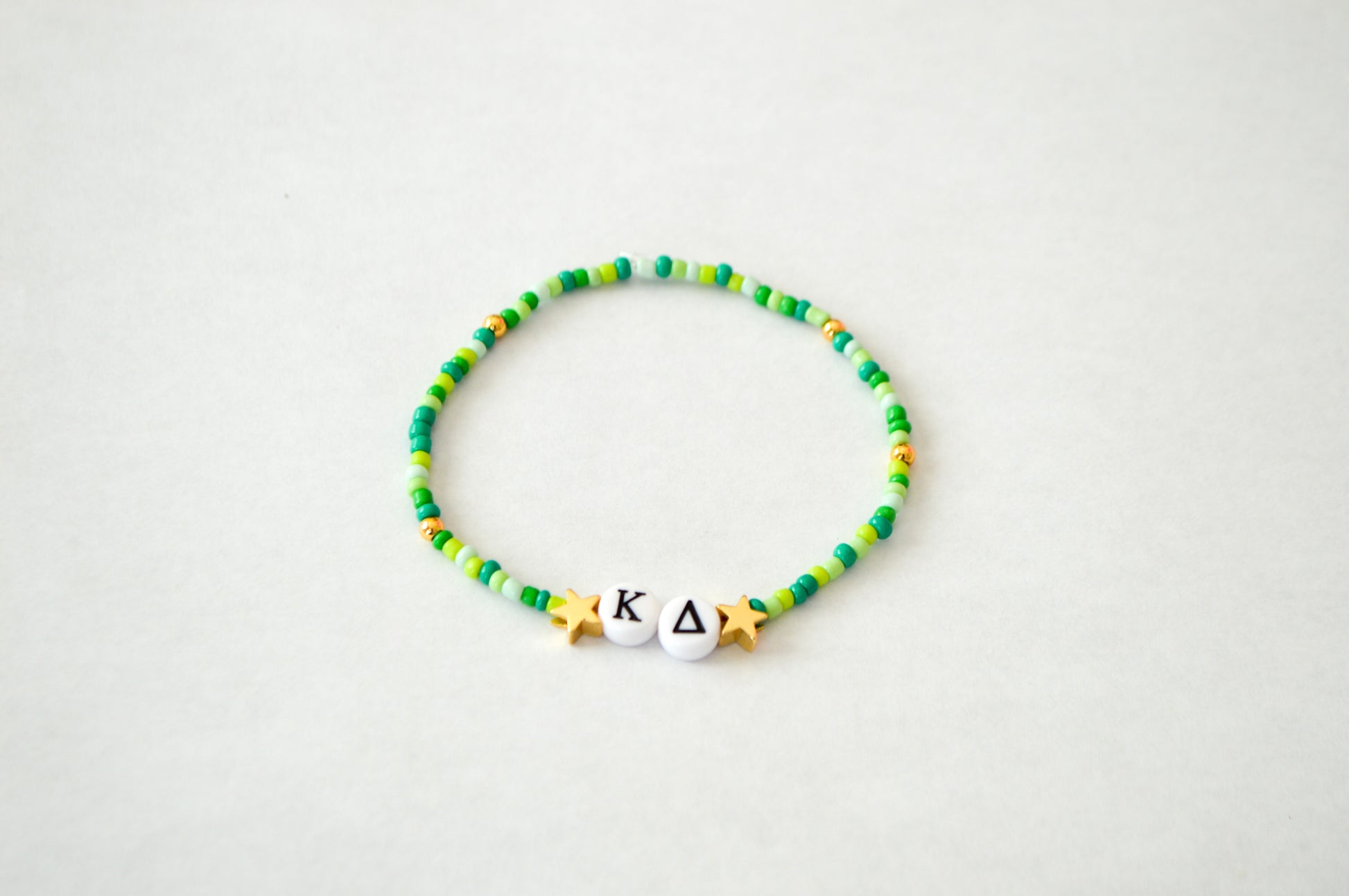 Our Kappa Delta bracelet is the perfect accessory to rep your sisterhood! Handcrafted with colorful glass beads, this bracelet measures 6 inches.