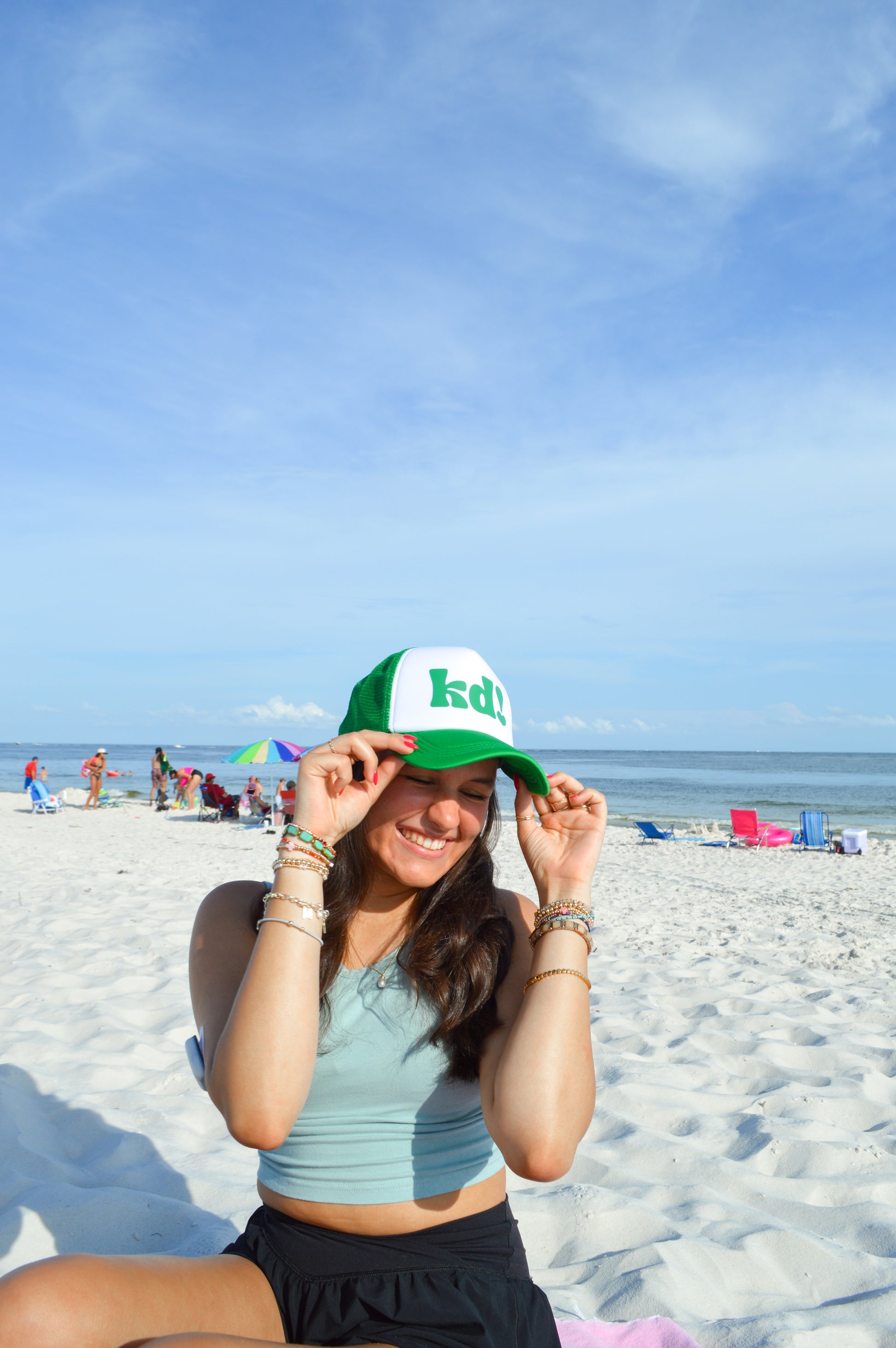 These lightweight, comfy trucker hats are perfect for bid day, pool days, or a casual campus outfit. Each hat is made using high-quality heat transfer vinyl for a clean, vibrant look that lasts. these are a must-have for any sorority girl!