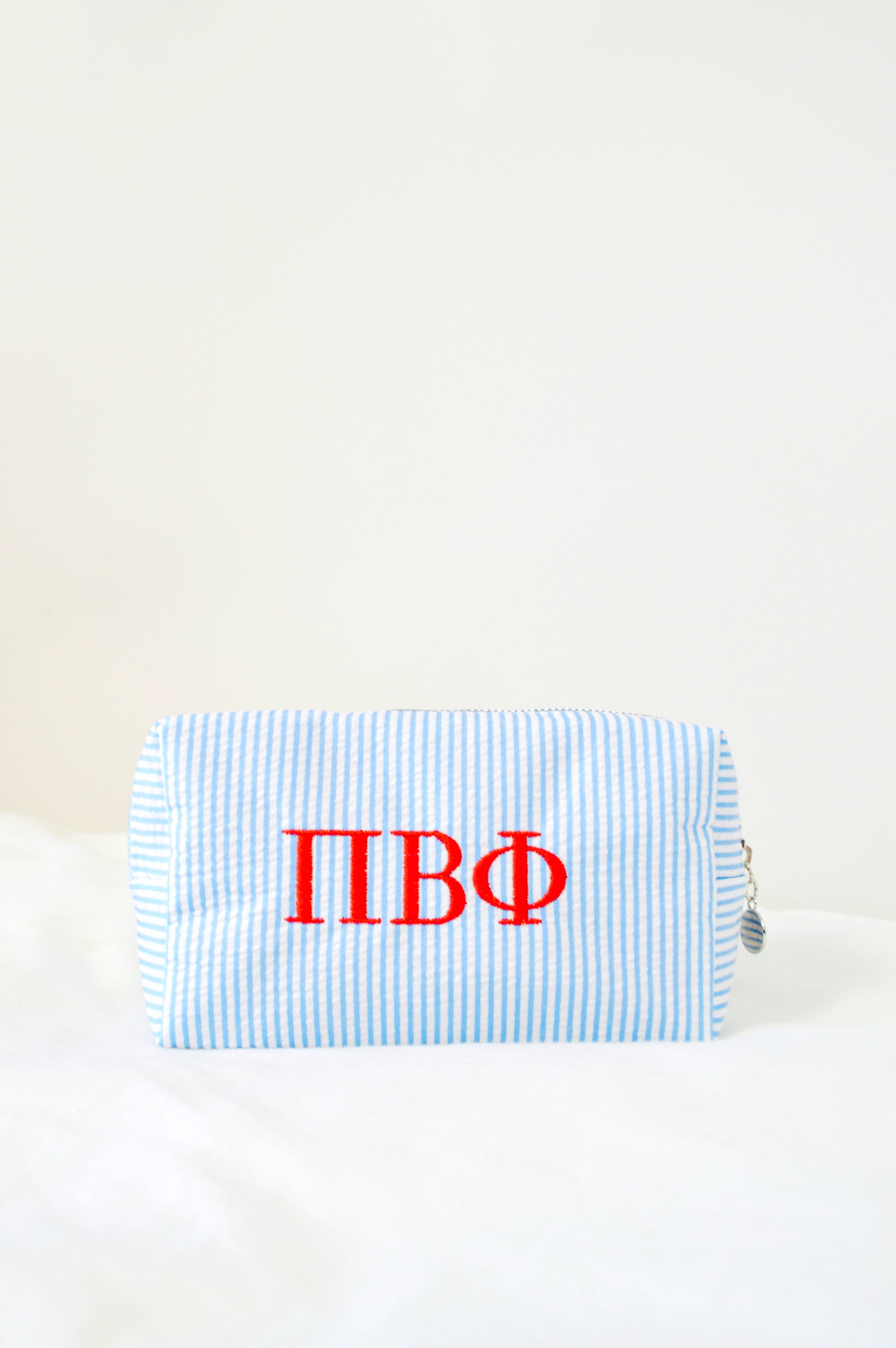Keep your everyday essentials organized in style with our embroidered sorority cosmetic bags!! Each bag is custom embroidered with your sorority’s Greek letters, creating a simple but elevated piece perfect for showing your sisterhood wherever you go.