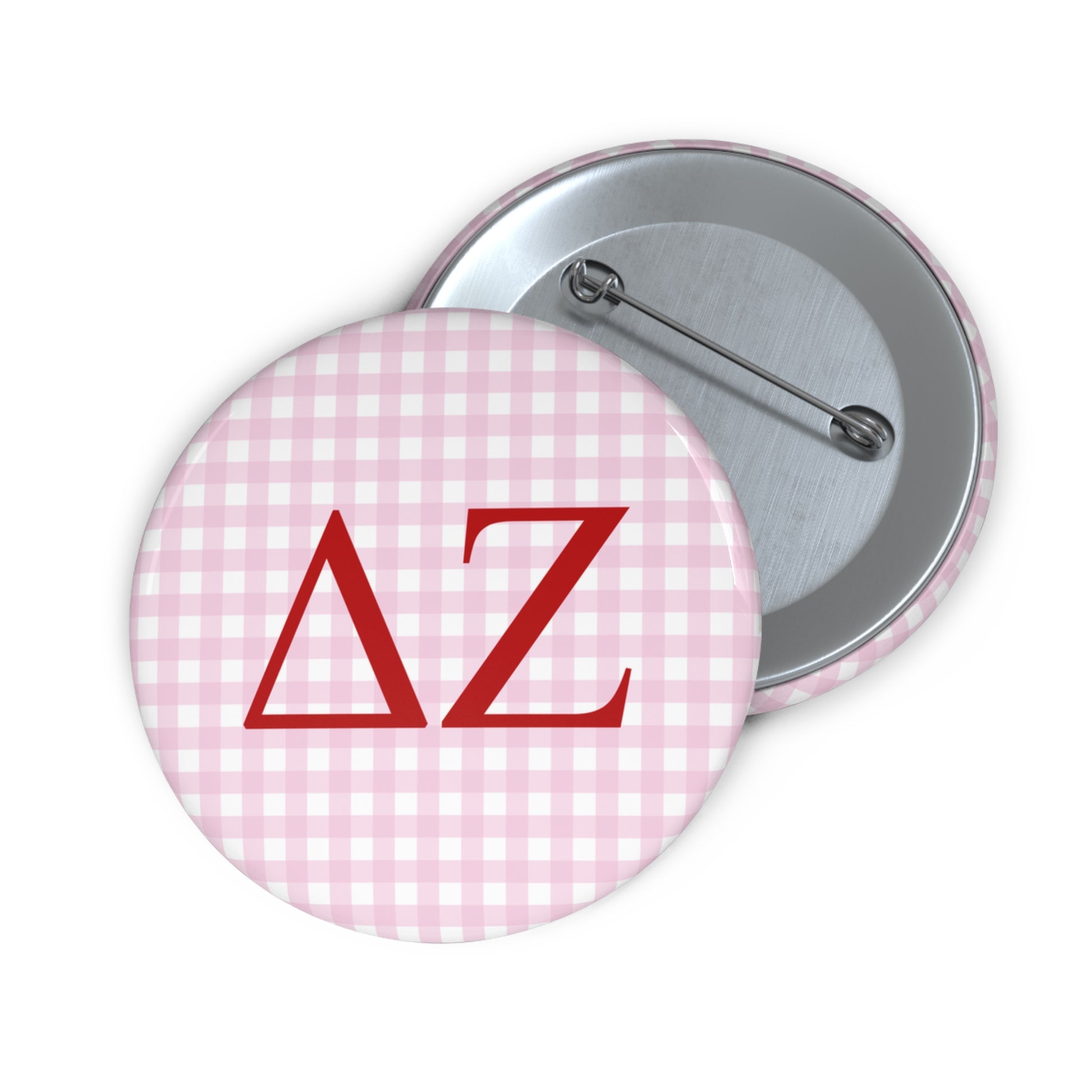These Custom Pin Buttons are made from metal, yet are lightweight and durable with a strong safety pin. Available for all of our Sororities!